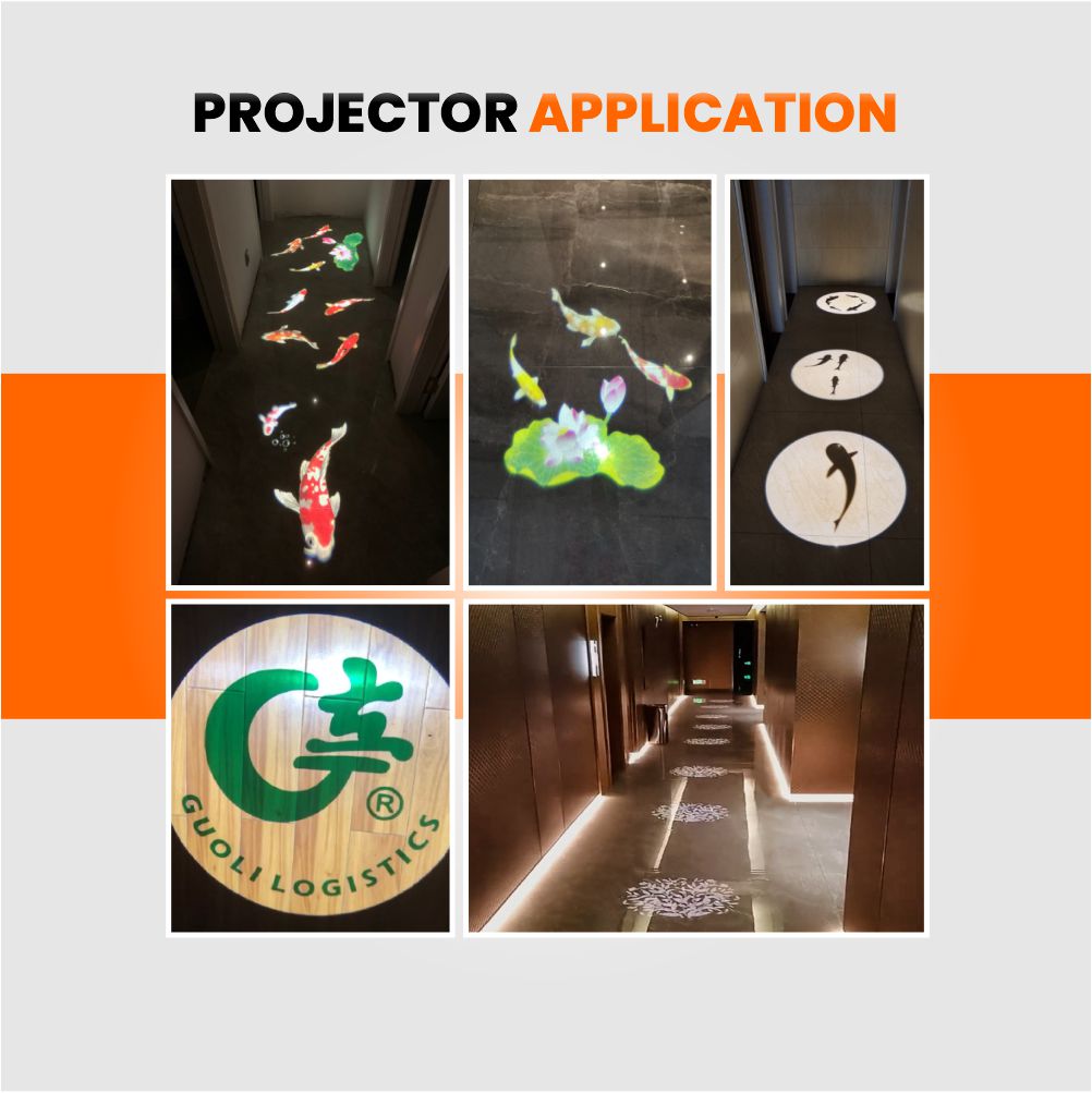 This combination allows businesses to use one projector for multiple campaigns, switching gobos depending on the occasion.