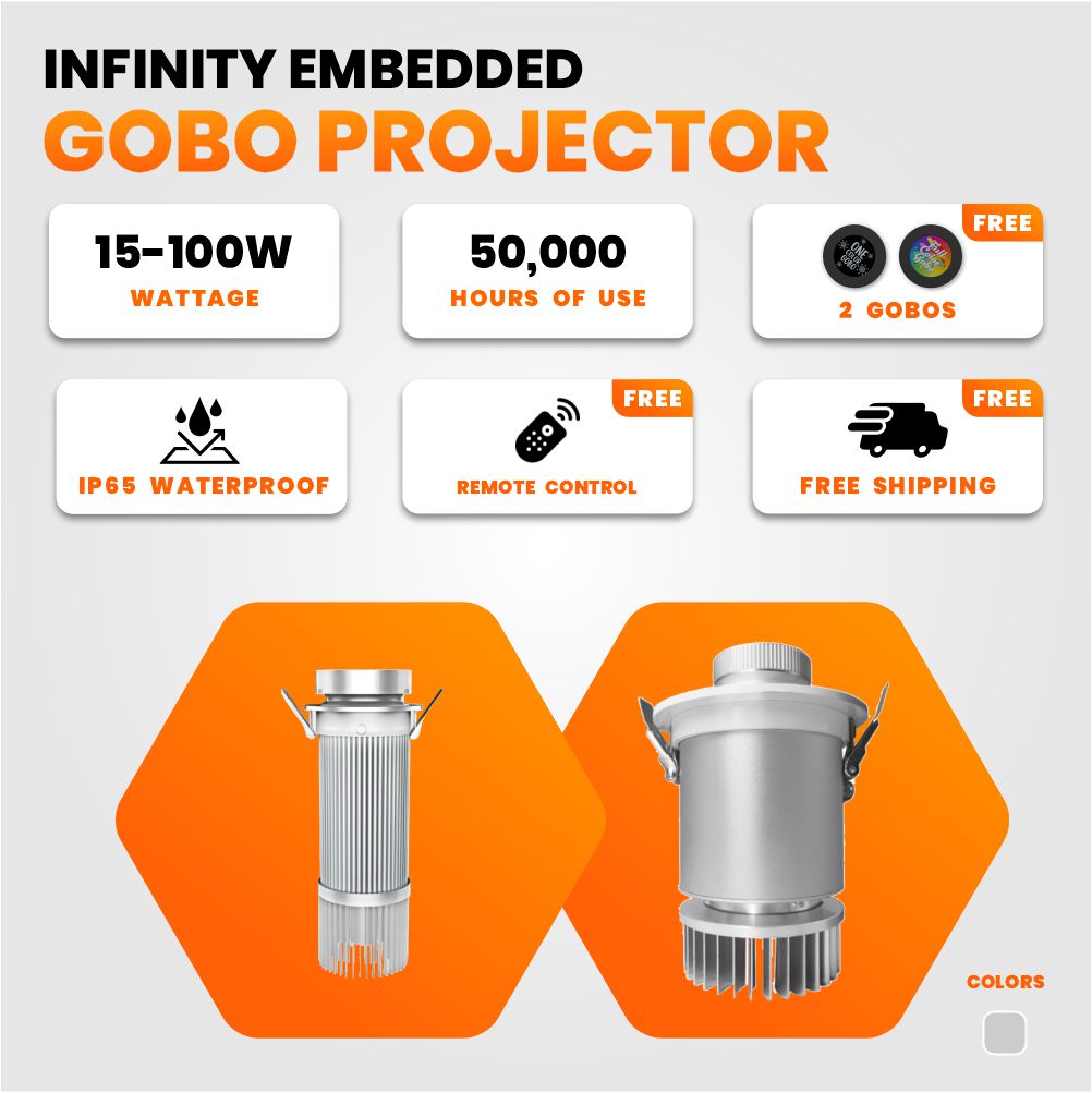 The Embedded Outdoor Waterproof Gobo Projector – 15W–100W combines subtle design with professional performance. Built for flush wall installation, it integrates seamlessly into walls, blending with architecture while delivering powerful branding.