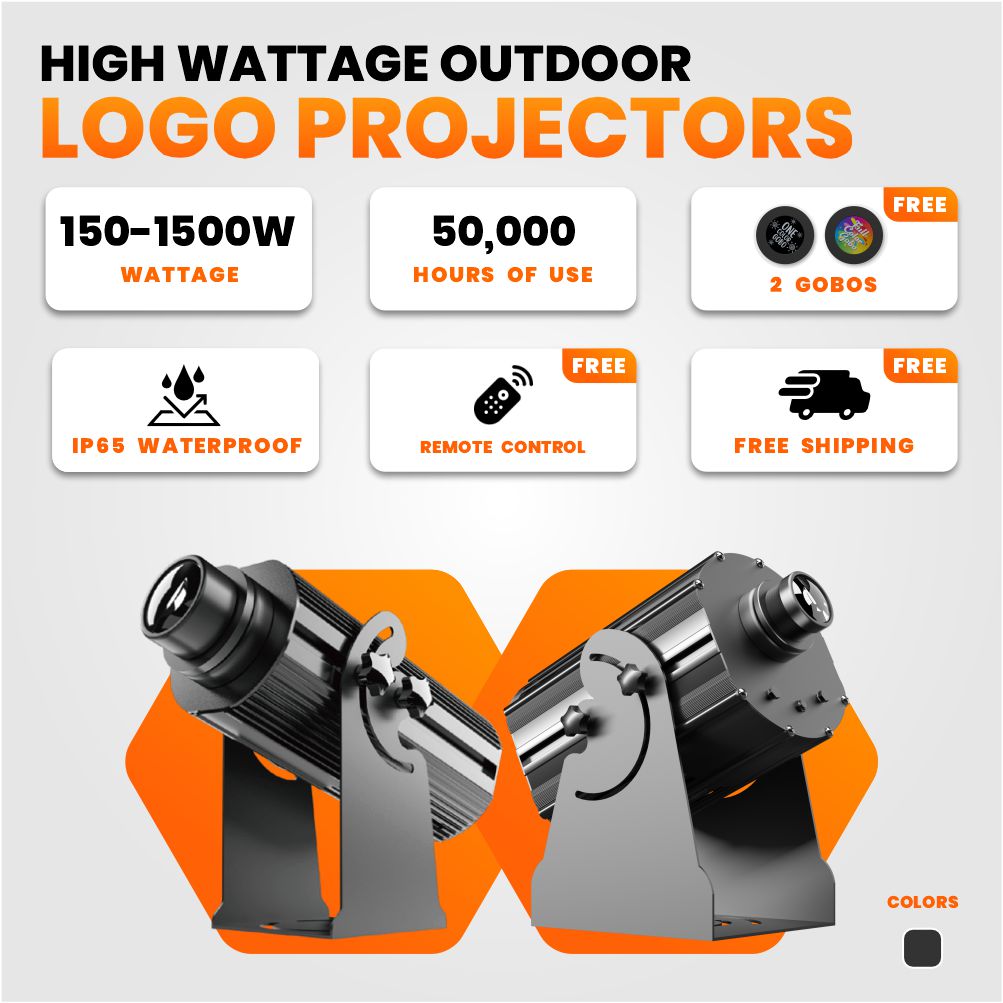 The High Wattage Outdoor Gobo Projector – 150W–1500W is the go-to choice for clients who need long-distance projection with professional reliability and crisp clarity.