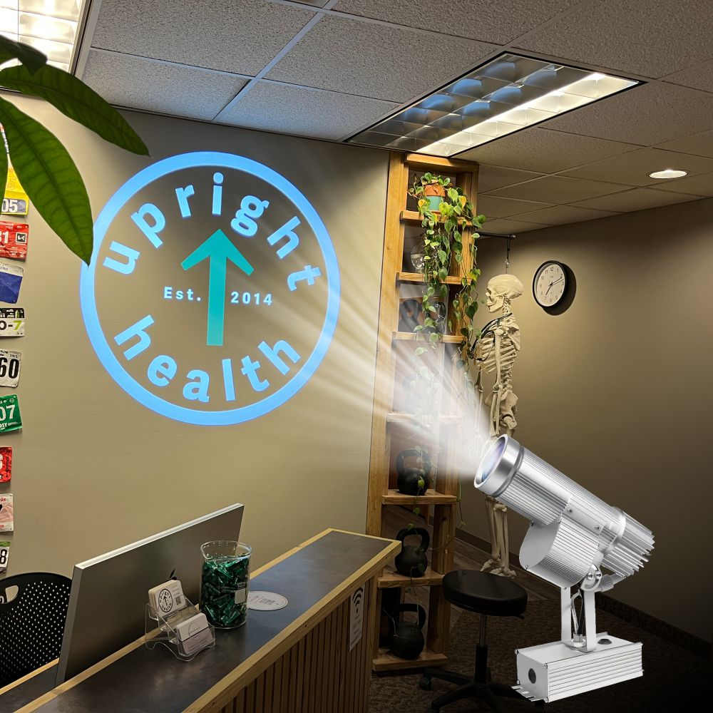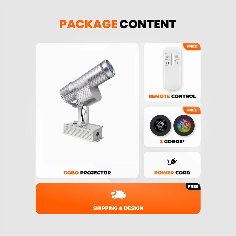 Projects 37mm custom gobos for clean, professional imagery. Each unit includes 2 free gobos—one full-color, one single-color—for maximum versatility.