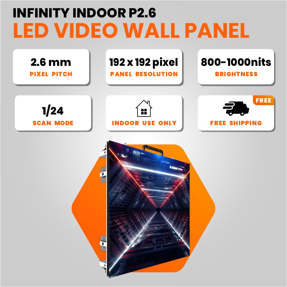 The Indoor P2.6mm LED Panel is engineered for reliable performance and balanced resolution, making it one of the most widely used LED wall options in professional installations. With its 2.6mm pixel pitch, the panel delivers sharp, detailed content at recommended viewing distances of 9–12 feet or more, ideal for trade shows, retail, studios, and corporate spaces. Technical Specifications Pixel pitch: 2.6mm Panel size: 500×500mm (19.7"×19.7") Brightness: 800–1000 nits Material: Lightweight die-cast aluminum (~7kg) Refresh rate: 3840–7680Hz Grayscale: 14–16 bit Lifespan: 50,000 hours Daily operation: up to 16 hours/day Performance Panels connect seamlessly for smooth, bezel-free video walls. The P2.6mm pitch provides high clarity without the premium cost of fine-pitch options like P1.9, making it an excellent balance of quality and affordability. Content & Control A controller is required, paired with either: PC + controller for dynamic event control. Android media player + controller for remote content scheduling and playback. Longevity Rated for 50,000 hours and 16h/day operation, the panels are built for long-term use across diverse environments. Delivery & Support Stocked in the U.S., orders ship in 3–5 business days with rush service available. Every order includes a 2-year warranty and lifetime technical support. Applications Trade show exhibits Retail displays Corporate offices and lobbies Broadcast studios Event venues and conference spaces The Indoor P2.6mm LED Panel delivers the right balance of performance and cost. For installations needing dependable clarity at mid-range viewing distances, it’s one of the best choices. Other pixel pitches (1.9mm, 2.9mm, 3.9mm indoor and outdoor) are also available.